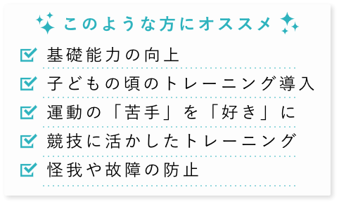 スポーツに取り組むお子様のパフォーマンスアップのお手伝いをいたします。