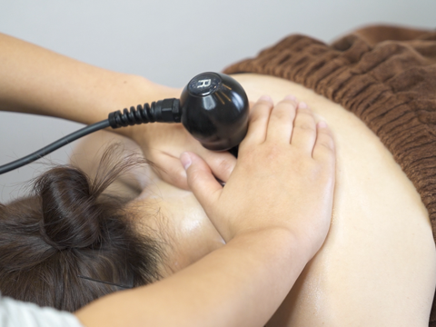 摩擦熱を発生させ、全身の体温上昇・マッサージでは届かないカラダの深部の頑固な張りや凝り、痛みなどの筋緊張を効率よく治療します。