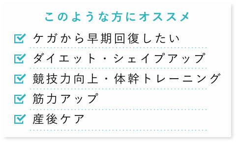 経験豊富なトレーナーが一人一人の目的・目標に合わせてメニューを構成し、マンツーマンで正しいトレーニング方法を指導していきます。